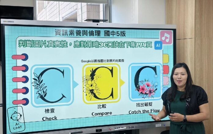 參與本次教材彙編工作明德國中陳妤蓁教師,以自身豐富教學經驗分享教學現場如何引導學生培養數位素養,例如,針對目前常見的「深度偽造(deepfake)」,利用AI讓兩張照片中的人物進行互動或透過換臉進行詐騙等,引導學生認識利用AI進行圖像或影音互動的潛在風險,進而培養學生謹慎使用相關技術的態度,並瞭解使用AI技術應具備的法律知識、著作權、肖像權和尊重他人的資訊科技素養。在實際教學的應用上,陳老師分享具體的做法,如使用「酷AI學習系統輔助作文寫作」利用AI撰寫參考作文,提供學生發想範例,後續學生完成作文後,再利用「酷AI學習系統輔助作文寫作」評分結果,深入瞭解自己作文可改進之處。「使用AI進行音樂創作」透過SUNO AI將難以記得的學科知識,編寫成自己喜歡的旋律,透過反覆聆聽達到記憶的效果。