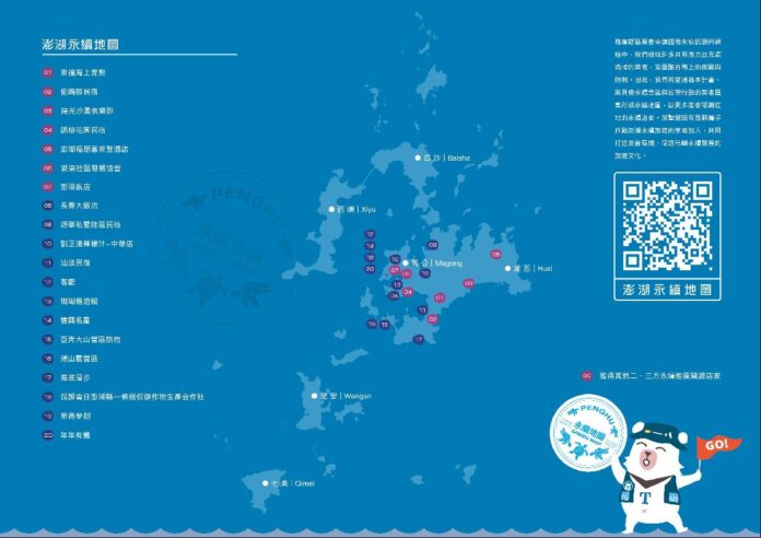 澎管處推出的「澎湖永續地圖」集結在地為永續旅遊努力的觀光夥伴,由業者在日常經營中實踐節能減碳、友善環境,以及融入在地文化或生態特色等行動,逐步落實永續旅遊的核心理念,符合條件者皆可向澎管處遞件申請成為「永續地圖」合作店家,並於澎管處官網進行宣傳曝光,也可優先報名參與管理處辦理的市集和旅展活動,歡迎有意參與永續地圖的業者至指定網址填寫申請資料(https://reurl.cc/Dqe84d),加入永續旅遊行列。