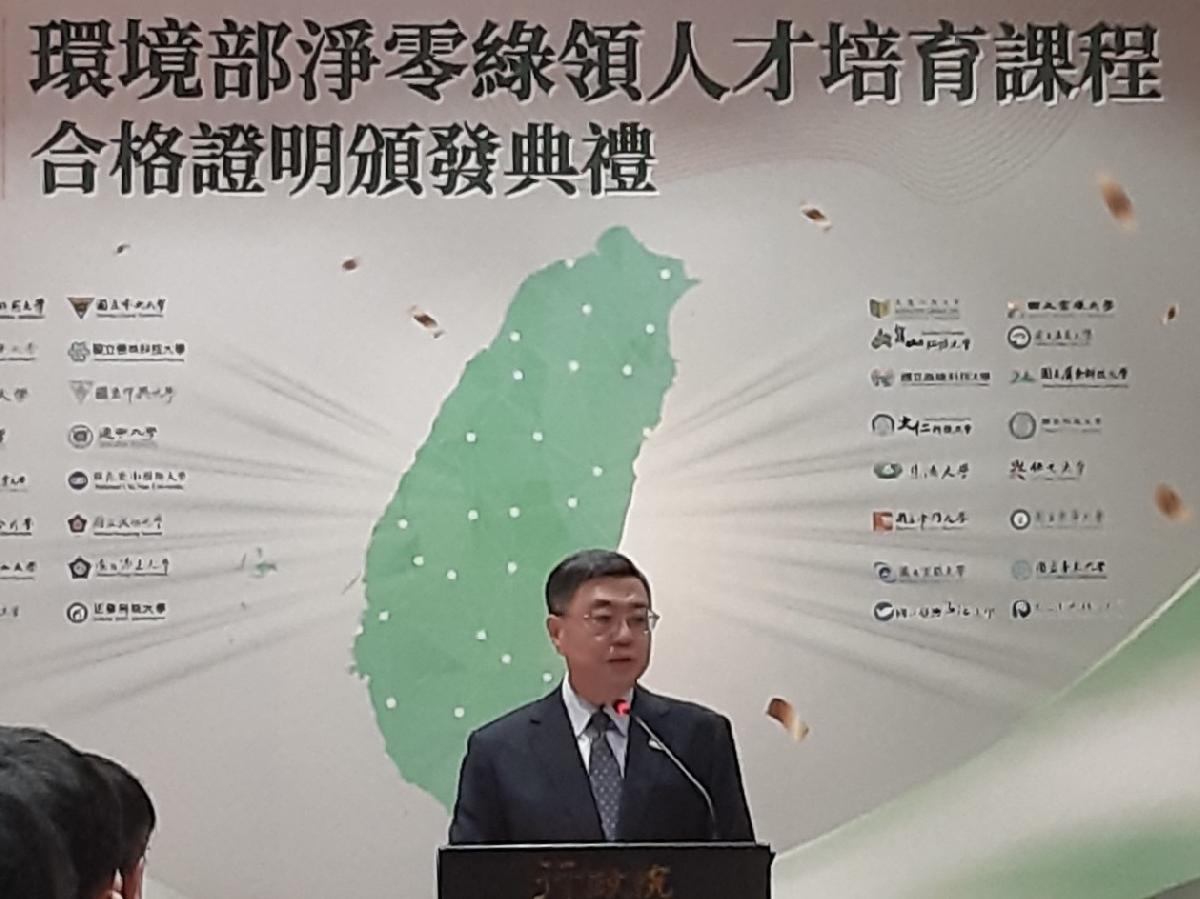 為支持我國推動淨零轉型及永續發展,環境部今(25)於行政院舉行「環境部淨零綠領人才培育課程」合格證明頒發典禮,並由卓榮泰院長親自頒發證明予通過測驗的20位代表,其中包含原民會產業人員阿美族陳建宏,原民會杜張梅莊 Adralriw Abaliusu副主委亦到場陪同分享喜悅,現場並有來自全國32所大專校院代表,共同宣布成立「淨零綠領人才培育聯盟」。