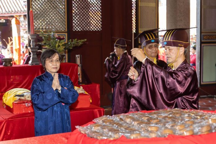 典禮歷經長期籌備,呈現最莊嚴與精緻的古禮儀式。現場鼓樂八音悠揚,佾舞翩然律動,流露出對聖賢智慧的深切敬仰。禮生由在地仕紳及明倫高中、麗山高中學子擔任,樂生則由重慶國中學生在孫瑞金樂長指導下演繹古韻悠長的樂章;大龍國小佾生在蔡富存老師帶領下,展現優雅整齊的佾舞隊形;開平餐飲學校師生以創意與細膩心思設計饌品,為典禮增添溫度與美感,世代相傳的學子與志工,讓儒家文化在此刻化為一場動人的文化交響曲。