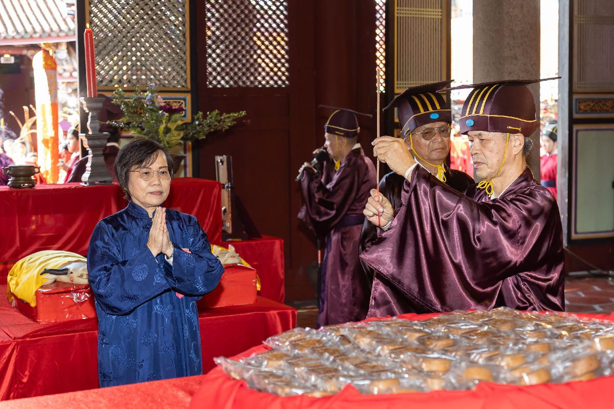 「臺北市各界紀念大成至聖先師孔子誕辰2575週年釋奠典禮」於9月28日(星期日)上午6時在臺北市孔廟隆重舉行。今年釋奠典禮由臺北市副市長張溫德擔任「正獻官」,孔子第79代嫡孫孔垂長先生擔任「奉祀官」;孔廟捐地者後代辜弘毅、陳熾宇、教育局副局長廖文靜、大同區區長洪育懷等人擔任「分獻官」;「陪祭官」由林珍羽議員與市政顧問、優良教師、傑出市民職司擔任,另外還有其他國外貴賓:日本論語普及會代表森田達雄、日本道德教育財團團長松本浩一,一同擔任祭典嘉賓,共同見證這場跨越千年的文化盛典。