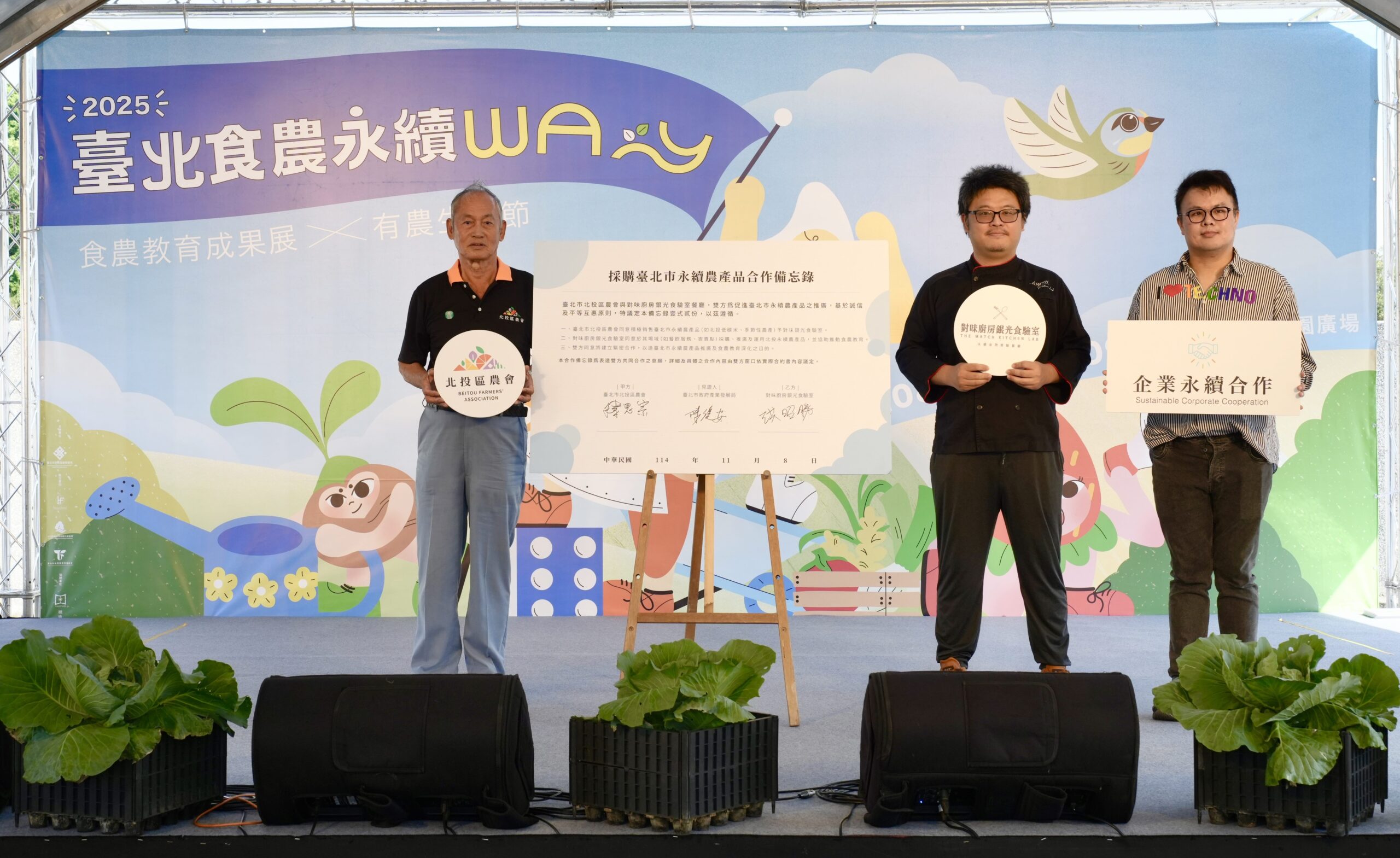 開幕活動將舉行企業永續合作簽署及食農教育教案競賽頒獎兩大儀式,展現臺北市推動永續農業與深化食農教育的雙重成果。由北投農會與對味銀光食驗室共同簽署企業永續合作備忘錄(MOU),產業局擔任見證人,攜手推動「在地食材、銀髮友善、永續飲食」,實踐友善耕作與永續飲食的理念。同場舉辦「114年臺北市食農教育推廣」教案競賽頒獎,公開表揚得獎單位,該競賽由產業局與教育局共同辦理,為鼓勵教育工作者、農場及市民設計兼具創意與實用性的教案,讓食農教育從校園與農業場域延伸至日常生活。競賽成果亦將於活動期間展出,並彙整上架至「臺北食農教育推廣平台」,促進教學資源共享與實作內容精進。