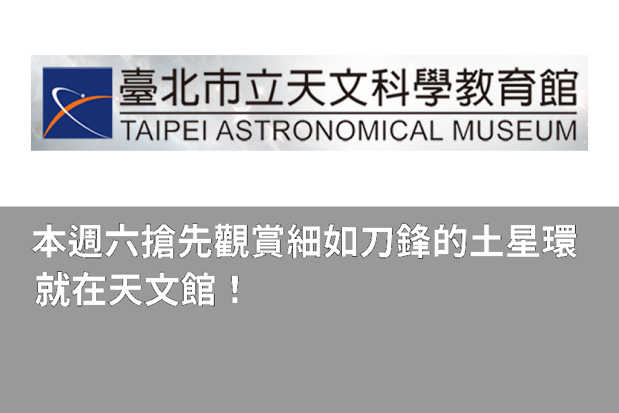 11 月 24 日(一)土星環將出現「收窄」的特別時刻,土星環的視線夾角將縮小至約 0.4 度,土星環看似一條極細的亮線,是今年可見最細的土星環。只要天氣良好,使用較大口徑的望遠鏡即可欣賞到這一年中最纖細、最獨特的土星光環。天文館將提前於 11 月 22 日(六)晚間 19 時至 21 時特別開放 45 公分口徑的大型望遠鏡,邀請民眾一同搶先觀賞土星環細如刀鋒的特別天象。