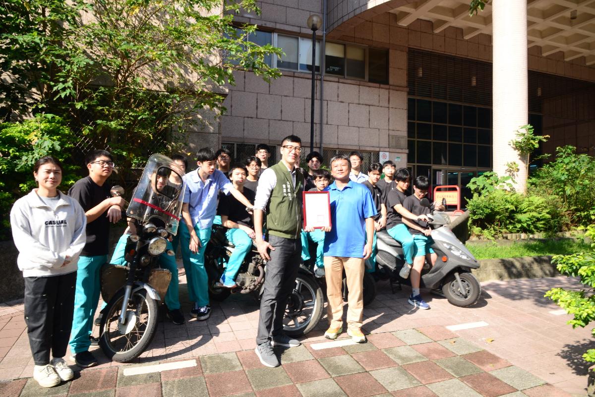 為了讓臺北市莘莘學子能有更充足的資源及教材,臺北市政府工務局大地工程處每年將汰換機車捐贈給鄰近學校,今年也捐贈4輛報廢機車給臺北市立松山高級工農職業學校。