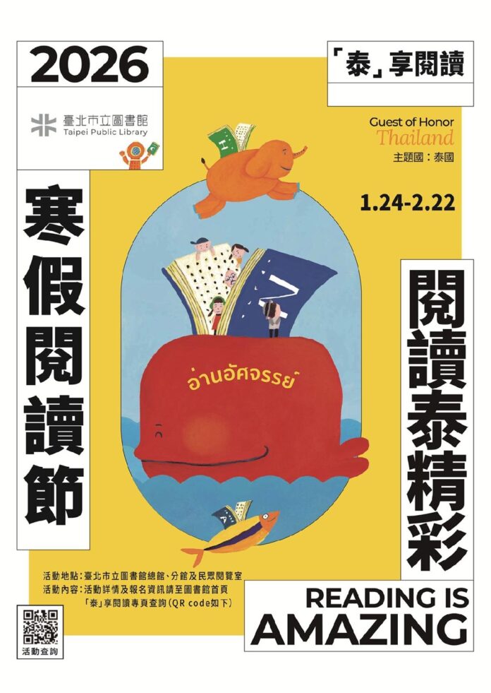 還在煩惱寒假沒地方去嗎?來北市圖就對了!臺北市立圖書館今年配合第34屆台北國際書展「閱讀泰精彩」,自115年1月24日至2月28日推出「泰享閱讀」寒假閱讀節主題活動,邀請大小朋友一起透過多元豐富的閱讀推廣活動,更深入了解「泰國」這個蘊含著豐富歷史文化的東南亞國家。
