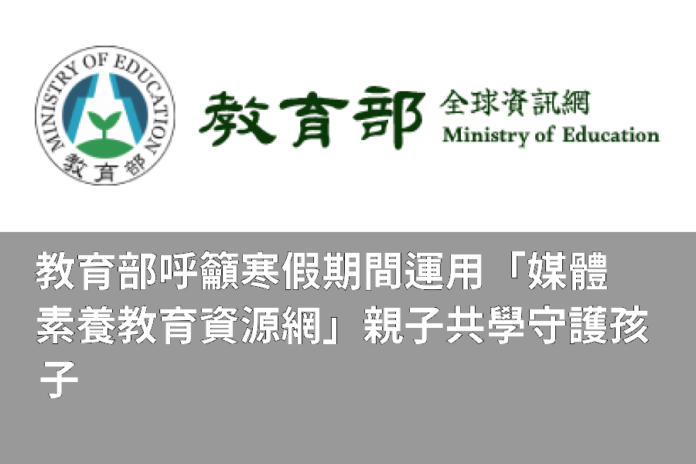 為深化全民媒體素養教育,教育部持續建置並推動「媒體素養教育資源網」,整合新聞案例、研究觀點與教學素材,提供家長與教師近用、實用且易於理解的參考資源。該網站以生活經驗為出發點,引導大眾理解媒體如何影響個人的認知、情緒與行為,並鼓勵家長在家庭情境中,透過實際案例與孩子討論其網路使用經驗。寒假期間,家長可善用這些資源,將看新聞、滑社群、追明星等日常媒體接觸,轉化為親子共學與對話的契機,協助孩子建立健康且具反思能力的媒體使用習慣。