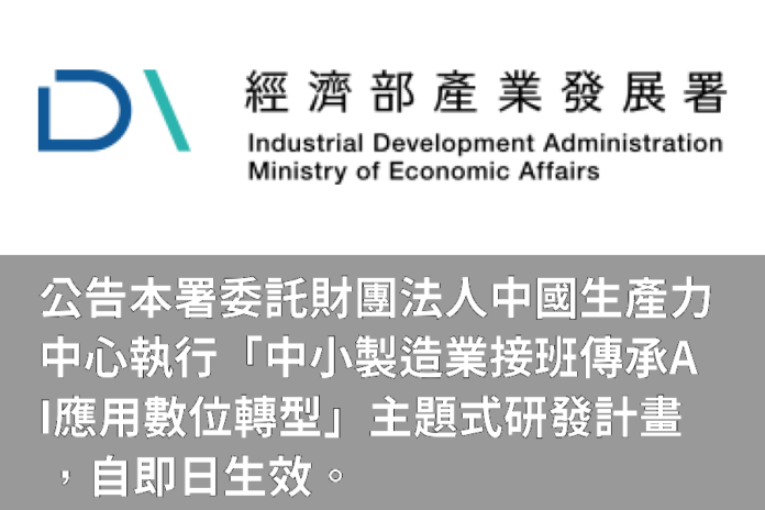 產經消費公告本署委託財團法人中國生產力中心執行「中小製造業接班傳承AI應用數位轉型」主題式研發計畫,自即日生效。 產經消費 公告本署委託財團法人中國生產力中心執行「中小製造業接班傳承AI應用數位轉型」主題式研發計畫,自即日生效。 編輯 江 秉鈞 2026-02-24 依據:一、經濟部協助產業創新活動補助獎勵及輔導辦法第3條。 二、行政程序法第16條第2項。 Tags經濟部產業發展署 延伸閱讀 商情 想同時增肌又減脂?年後體態管理關鍵曝光 客製高蛋白營養方案助代謝重啟 商情 年後減肥不挨餓!台北中山區高蛋白健康餐推薦 助上班族重啟代謝找回體態 商情 年後體態管理怎麼做?專家推高蛋白健康餐助攻代謝重啟,台北中山區減脂餐新選擇 商情 台中機械五金批發賣場推薦|益佃五金提供全方位刀具、量具與客製化服務,全台速配直送