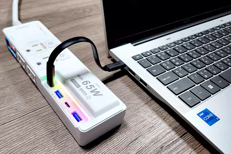 相關延長線產品同時支援QC3.0與PD快充技術,可兼容筆記型電腦、SWITCH遊戲機及APPLE系列手機與平板裝置,無須再額外搭配大型充電器,僅需將傳輸線直接插入延長線充電埠,即可完成高效率充電,提升用電便利性與桌面整潔度。
