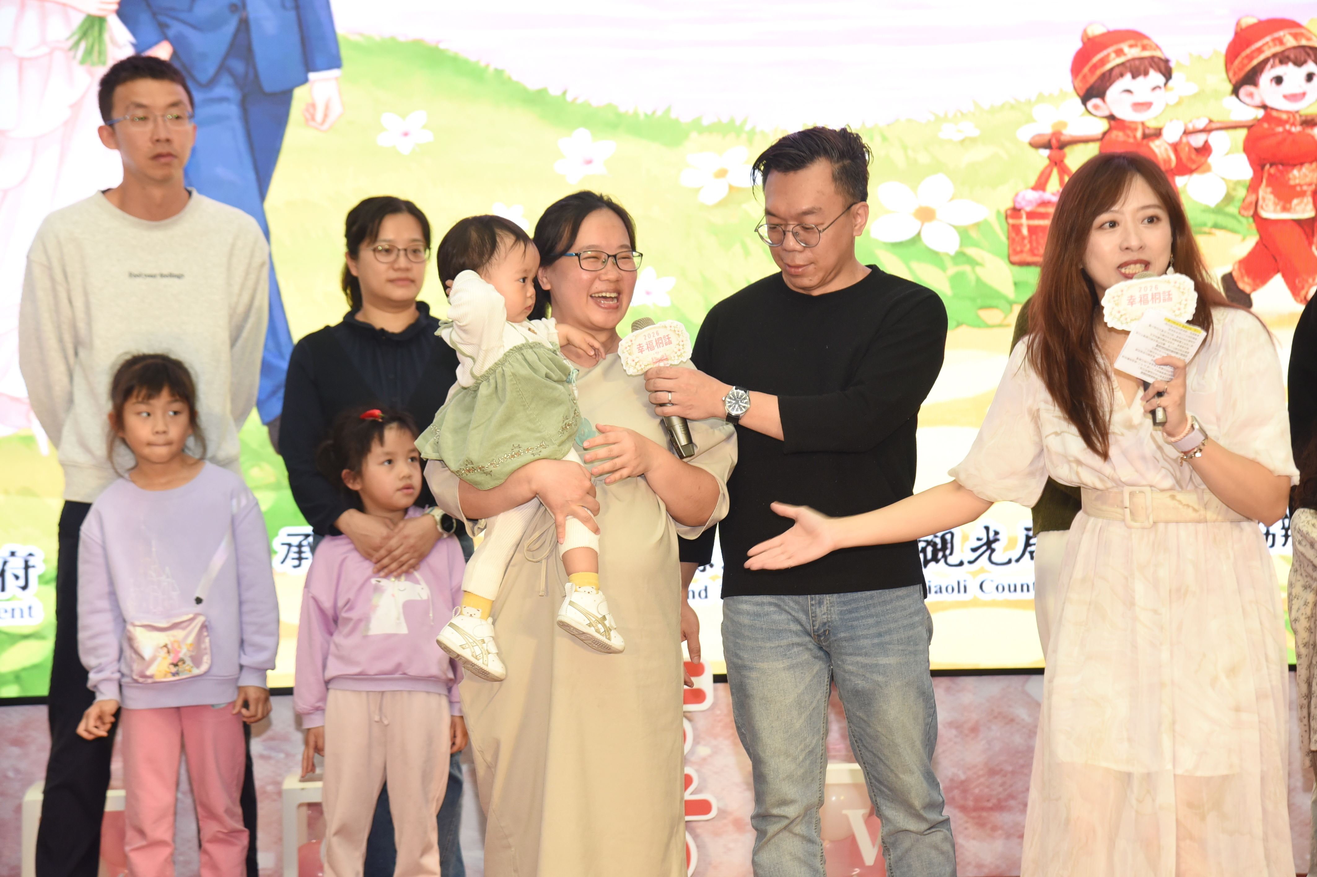 受邀出席桐花婚禮啟動儀式的6對夫妻檔,各自帶了1至3名愛的結晶到場,逐一分享他們報名桐花婚禮的原因、趣事和多年來夫妻相處之道。他們多數感染到親友或同事在桐花婚禮的浪漫氛圍,有的直言看中幸福六禮的實用性,進而決定報名,其中有1對是從單身聯誼活動中結緣成功配對後,直接報名這項浪漫婚禮;有些夫妻對婚禮安排的趣味橋段至今印象深刻,更重要的是,他們都覺得婚後家庭和諧、幸福滿滿。
