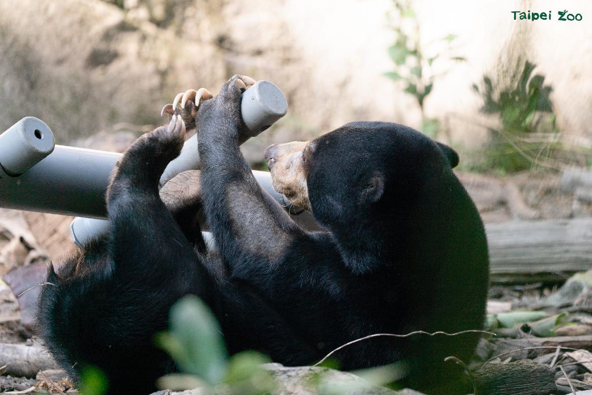 馬來熊姊弟雌性「小熊妹」與雄性「熊霸」都是在臺北市立動物園出生長大的個體。為了照顧馬來熊們的生活起居,照養團隊努力採取環境豐富化布置、行為豐富化玩具、食物供應變化等方法,增進牠們生活的樂趣。大家也許在馬來熊的戶外活動場觀察過牠們趴在大型棲架上,抱著PVC管行豐大快朵頤;或在活動場裡到處「翻箱倒櫃」把鼻子塞進所有能塞進的地方,尋找食物的可愛模樣,這都是豐富化的成果。在出發前往日本円山動物園之前,臺北動物園的馬來熊照養團隊已與円山動物園團隊密切交流各種照養細節,並針對運輸籠減敏適應、行為觀察與健康狀況進行周全準備,確保馬來熊「小熊妹」和「熊霸」能安穩地到達日本並適應嶄新的生活環境。在馬來熊還沒有出園的這段期間,歡迎多來園觀察並記錄可愛的馬來熊!