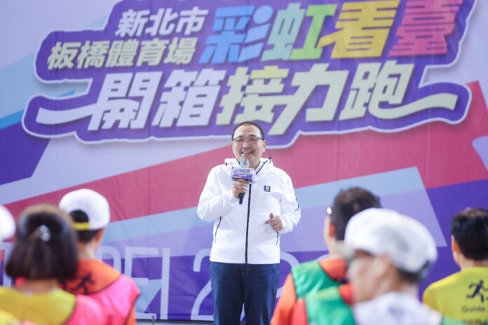 迎接嶄新板橋體育場「彩虹看臺」,新北市今(26)日舉行「彩虹接力跑」,邀請視障跑者領銜起跑,由新北市長侯友宜為賽事鳴槍,藉此活動提倡運動平權理念,歡迎所有民眾前來體驗最美麗的彩虹運動場館,也祝福市民朋友新年開春都能一馬當先、馬到成功。