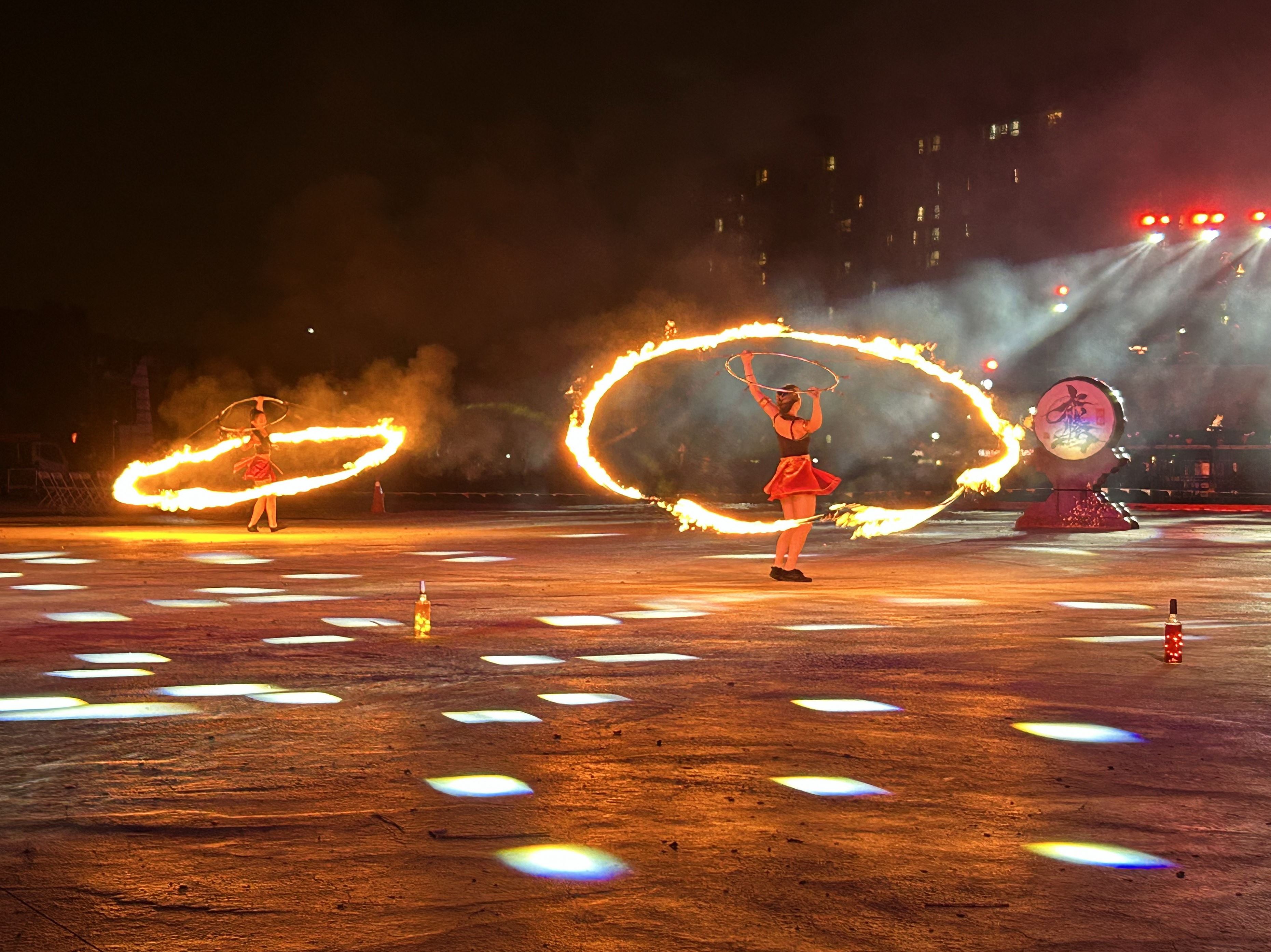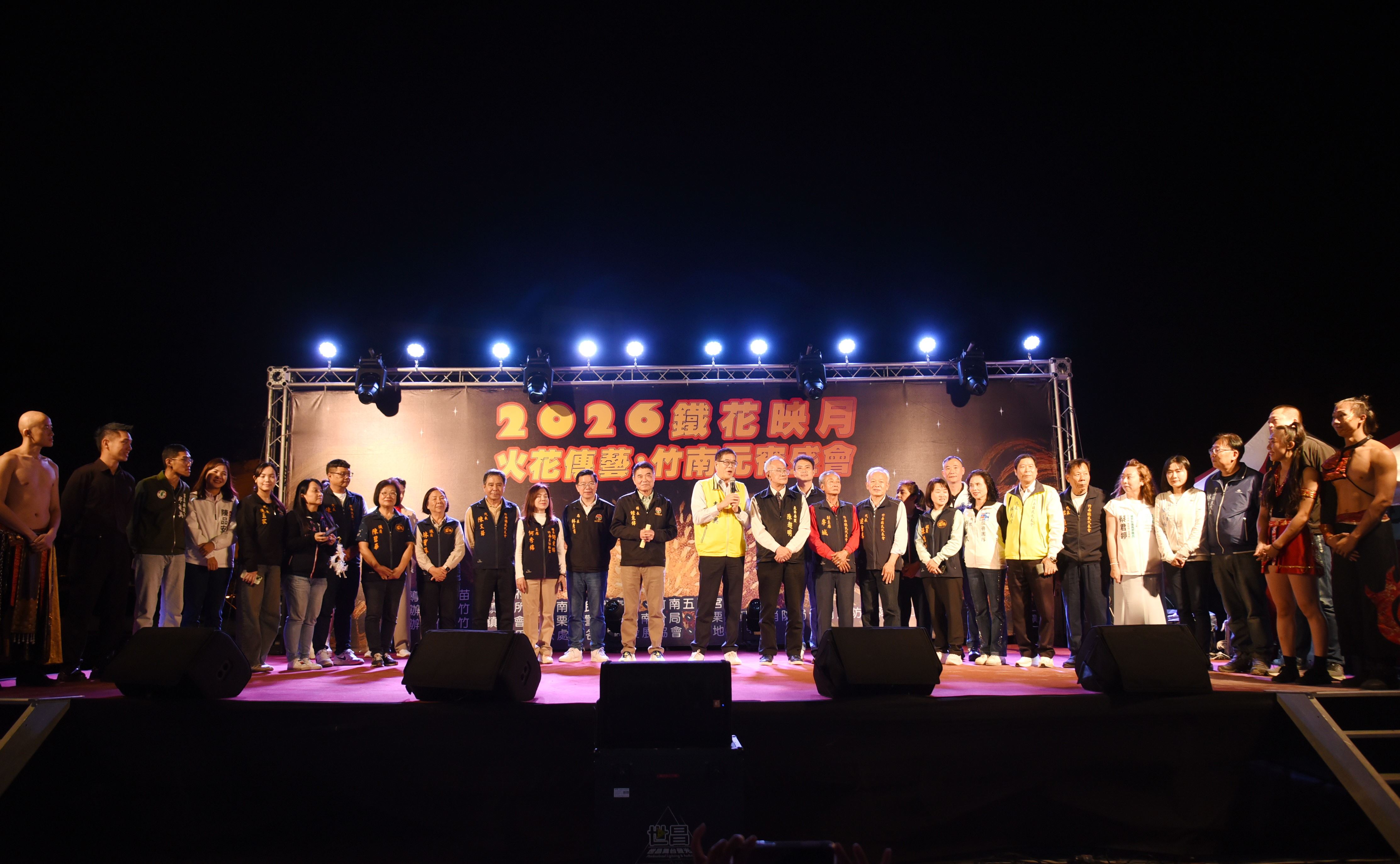 竹南鎮公所26日晚間在海口分校預定地,舉行「鐵花映月—火花傳藝」元宵盛會,融入鐵花、火舞、音樂及社區舞蹈等傳統民俗藝術與展演元素,以璀璨的火花和耀眼星光照亮夜空,為觀眾營造一場震撼的感官饗宴;縣長鍾東錦讚許這場國際水準的藝文展演,讓觀眾大飽眼福,更期許兩岸以文化藝術交流,只要鐵花、火舞相輝映,絕對不要戰爭交火,相信這是兩岸好朋友也是世界各國共同的期望。