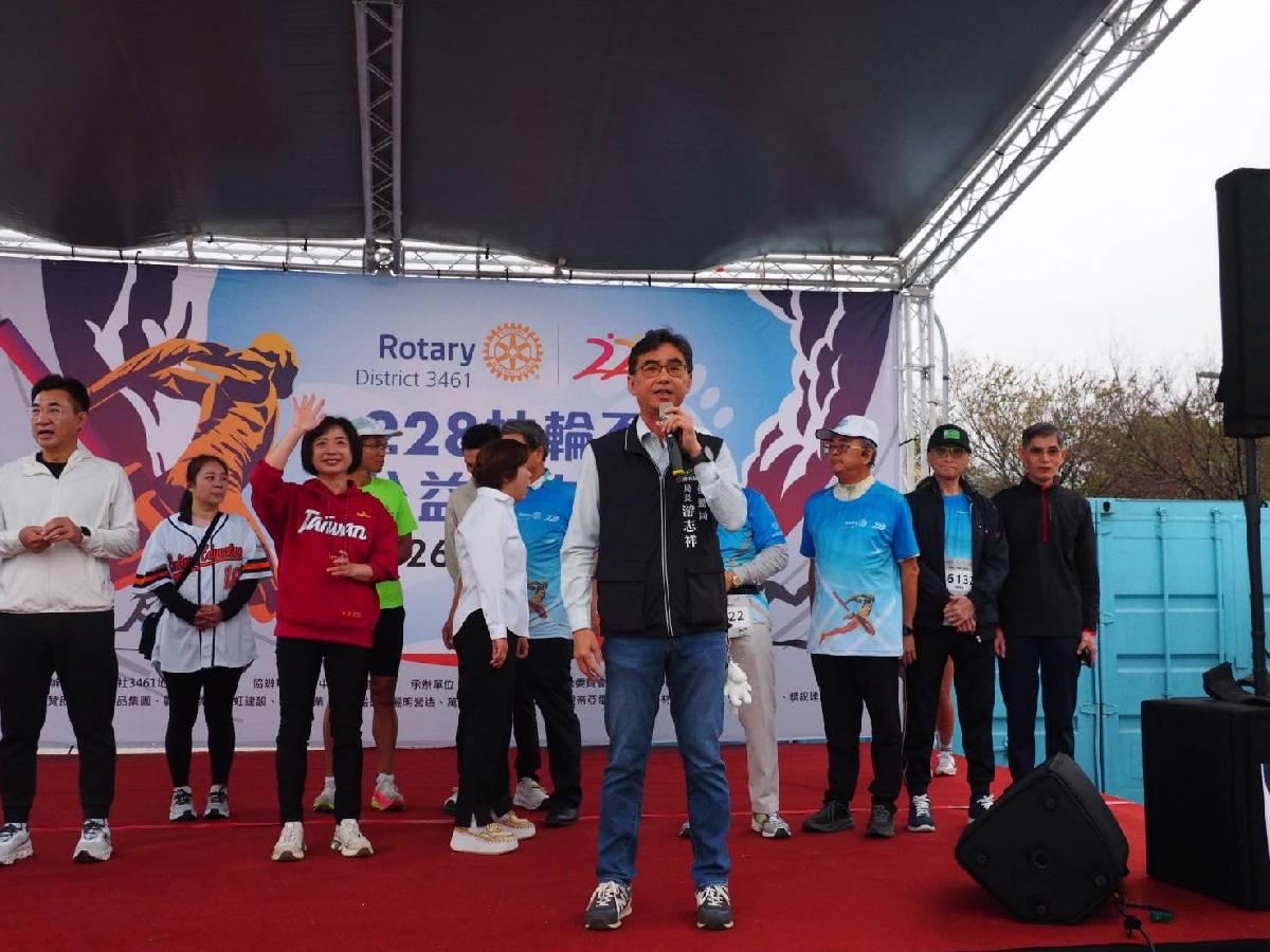 今日活動,立法院副院長江啟臣、立委楊瓊瓔、何欣純、廖偉翔、市府運動局長游志祥、3461地區扶輪社總監蔡陽明、3461地區扶輪社馬拉松主委林勝結等皆到場支持。(2/28*15)*運動局
