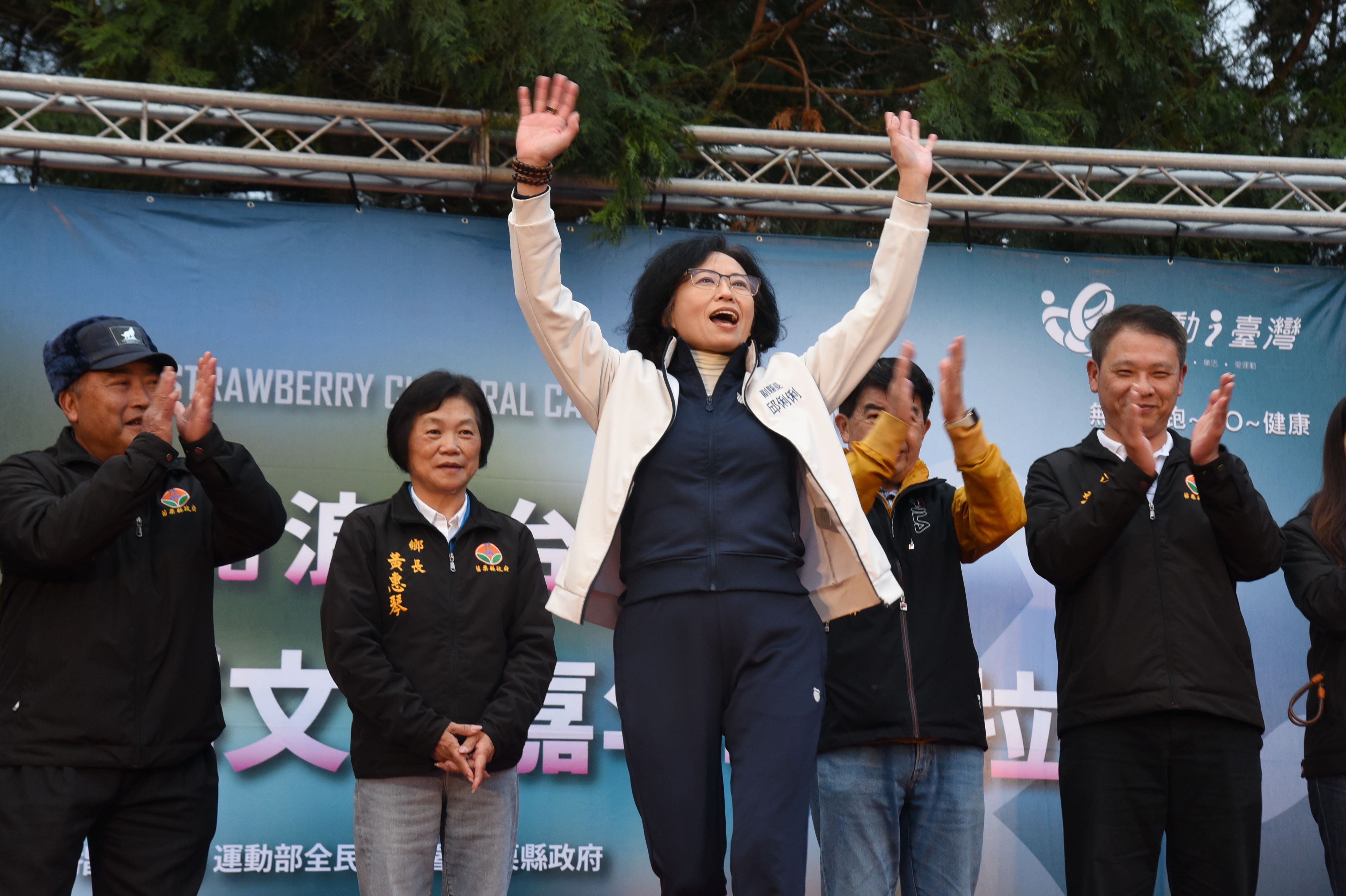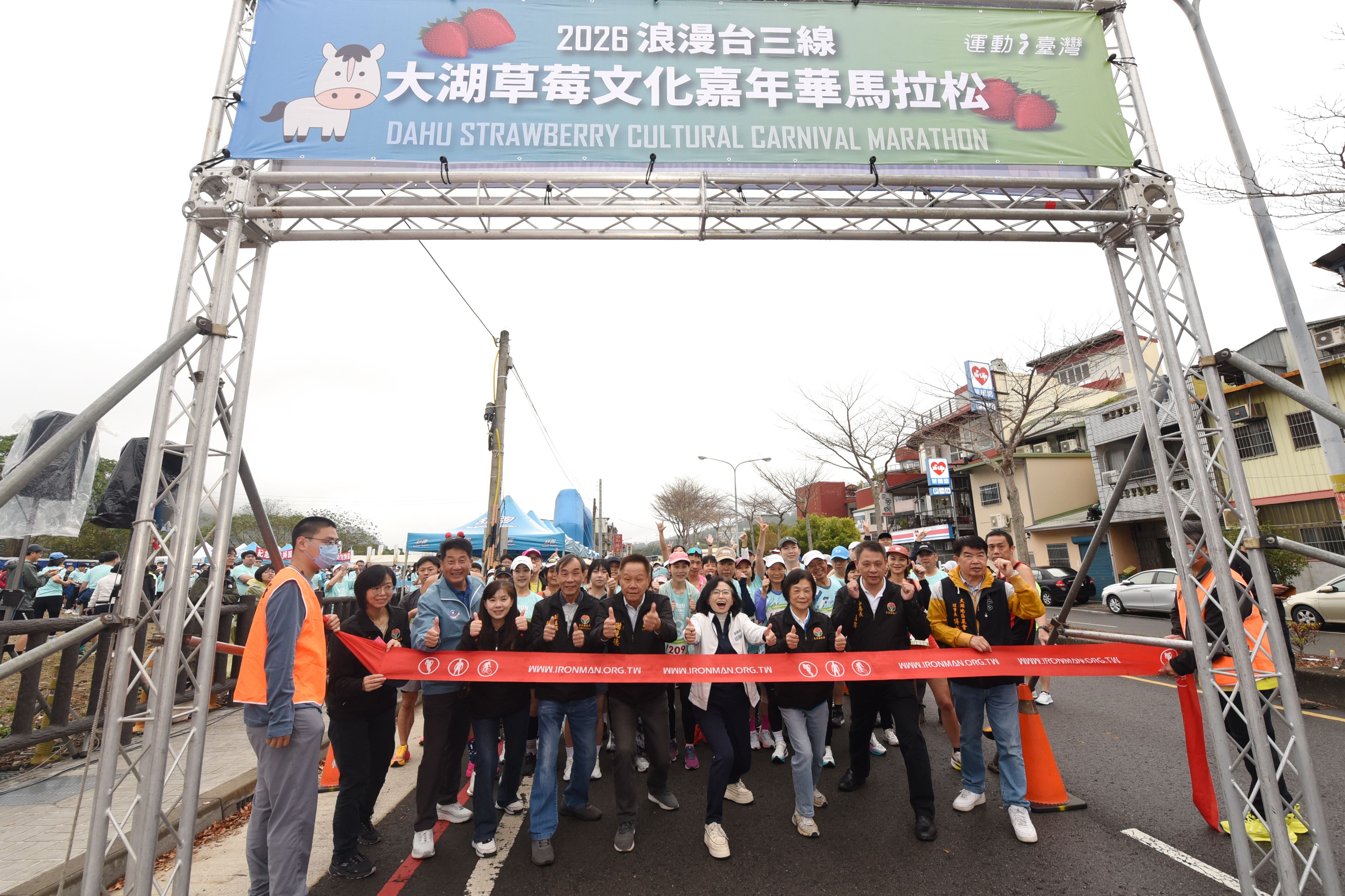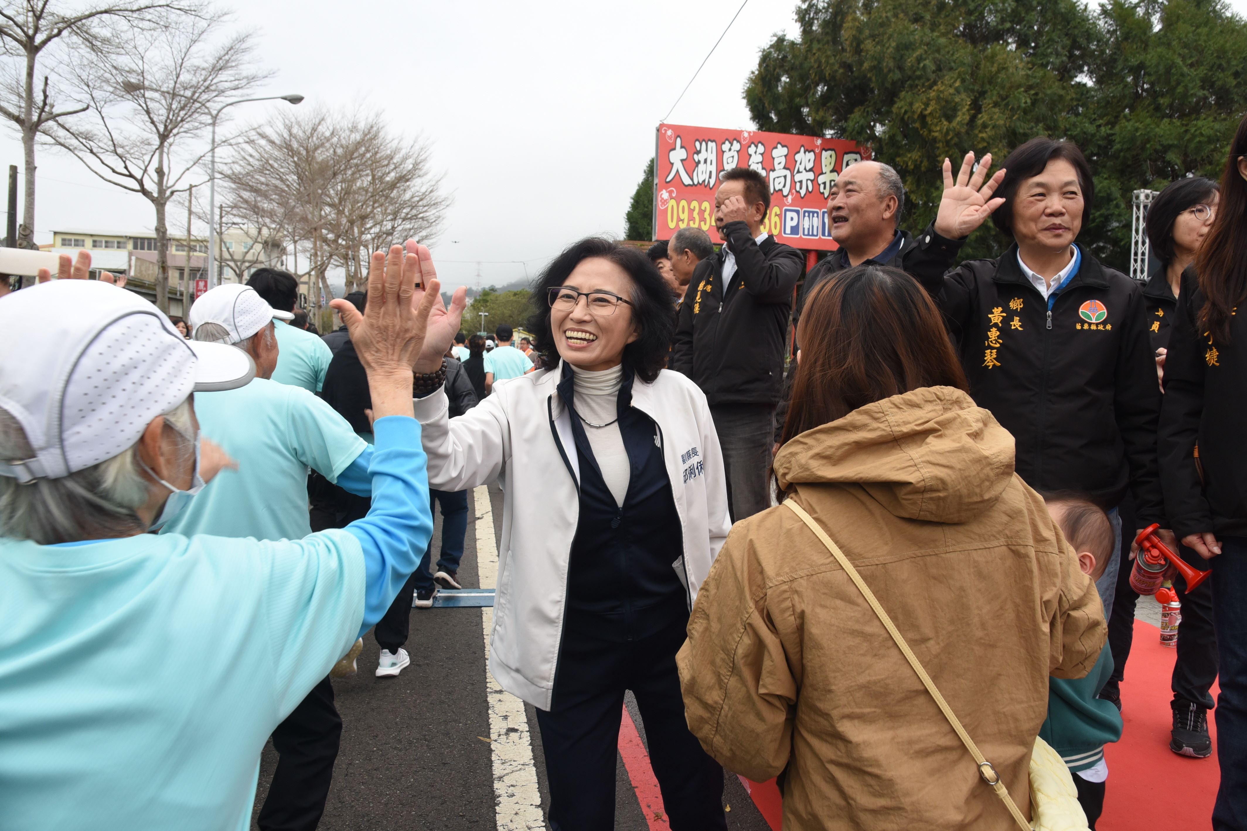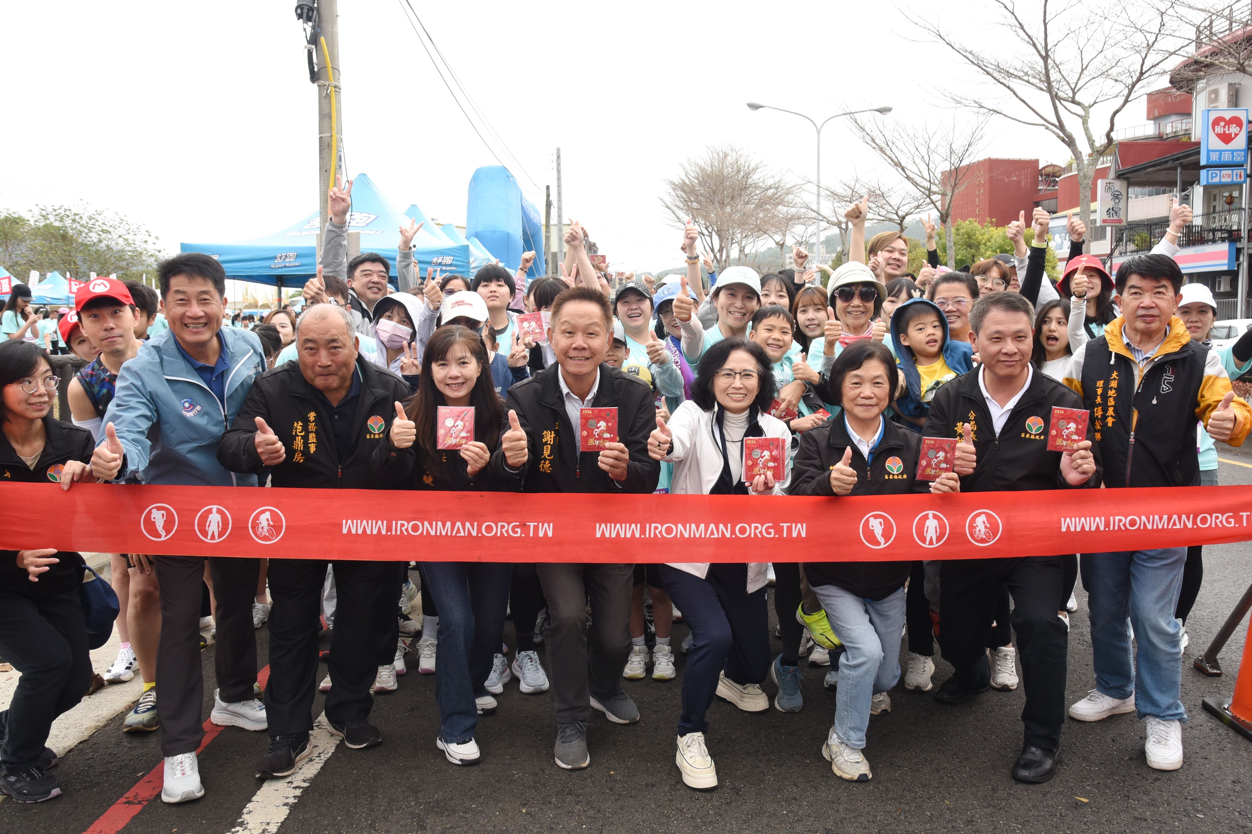 2026戀戀大湖草莓文化嘉年華全國馬拉松,28日清晨在副縣長邱俐俐、大湖鄉長黃惠琴及地區農會三巨頭鳴笛後開跑,3600多名分別參加全馬、半馬、健跑及休閒組的跑者,每間隔20分鐘相繼起跑。邱俐俐到場歡迎來自全台、離島和國外的路跑愛好者,在起跑點與跑者擊掌為他們加油打氣,另加碼致贈相當搶手的縣長馬年福袋和拱天宮奶嘴,給來自遠方的跑者和同行的嬰幼兒。