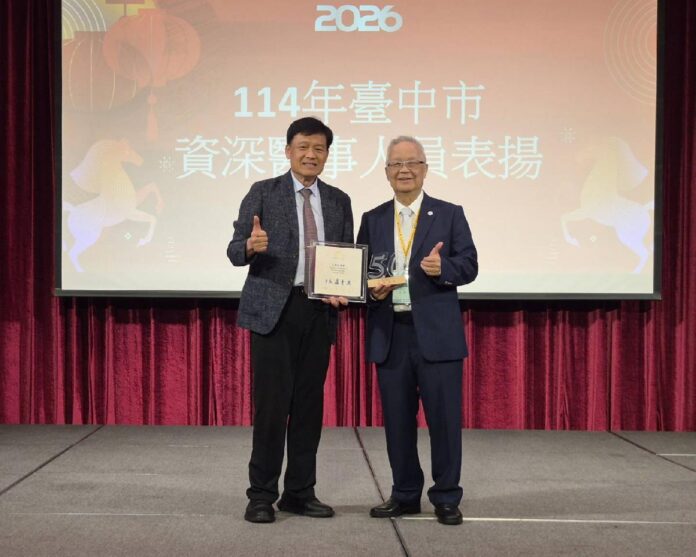 社團法人台中市醫師公會今(1)日舉辦春節聯誼晚會,台中市政府衛生局長曾梓展到場感謝醫師奉獻付出,並表揚「114年M痘疫苗施打獎勵方案」執行醫療院所,以及感謝資深醫師長期奉獻。