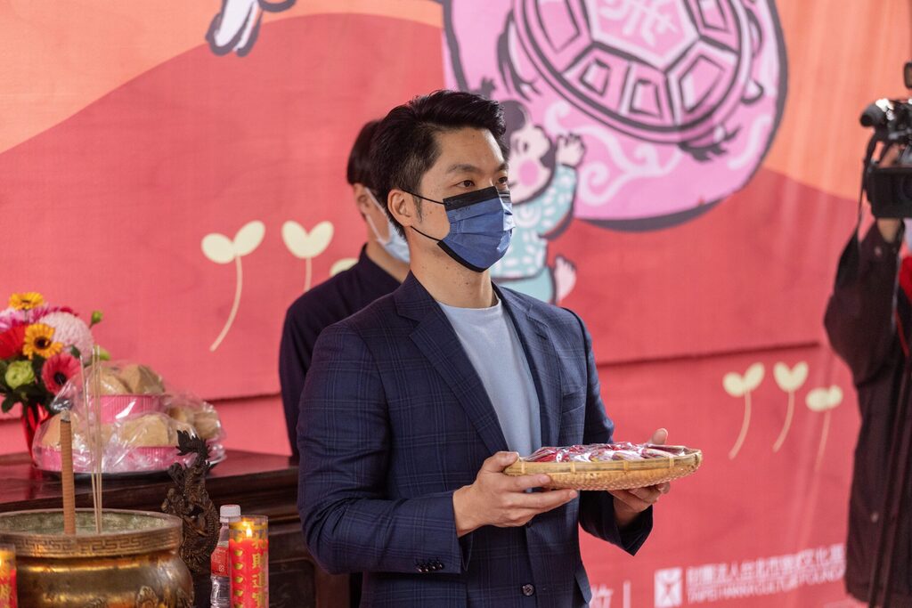 蔣萬安接續表示,除了有新丁新枝祈福儀式以外,今天也特別準備由糯米做成的新丁粄,別具意義,希望所有新出生的孩子,都能夠平安健康的成長。他並表示,今天除了北市市長的身份以外,同時也是以新生兒家長的身份來參加這場儀式,與現場在座的家長一樣,都十分開心最近有新成員來到我們的家庭,今天也很高興把這個喜悅跟所有的好朋友分享,希望藉由這個祈福儀式,讓所有的孩子都能夠平安健康。