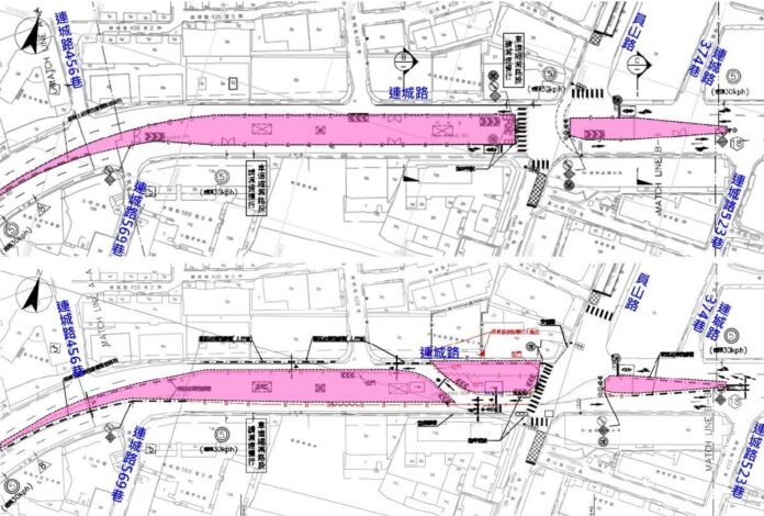 為辦理捷運萬大-中和-樹林線(第一期工程)CQ860區段標工程中和高中站北側出入口結構體施工及鋼構吊裝等作業,施工單位預定自112年3月1日起將連城路與員山路口至連城路422號間施工圍籬由中間側調整至北側(詳附圖),經由土城區往中和及永和區方向之車道則不受影響,既有大眾運輸站位不調整。施工期間該路段仍維持雙向各1混合車道,請經過施工區域之用路人注意車道動線調整減速慢行,並依現場指引標誌及交通指揮人員指示通行。