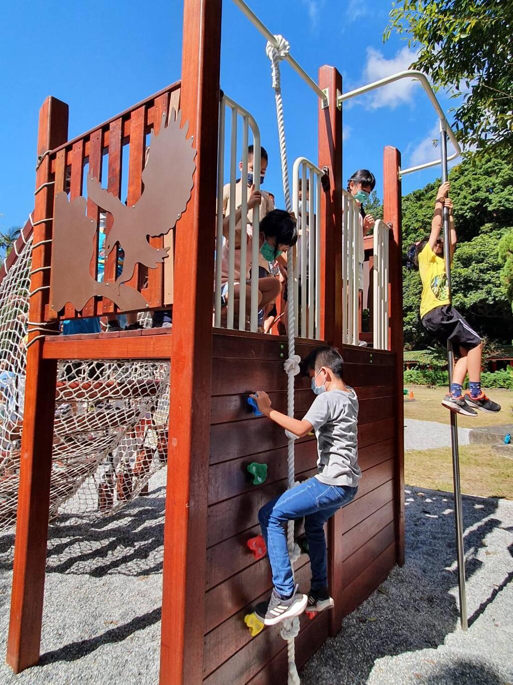 ▲學生和同學在新的木遊造戲設施玩得好開心