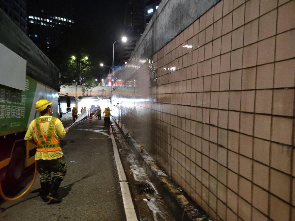 環保局說明,為維護北市市容整潔,該局每年均會安排全市隧道及車行地下道清洗作業,作業期間該局將封閉作業路段之內外側車道,擺設交通錐、閃爆燈及LED顯示板警示車輛等警示裝備,並出動可吸收撞擊動能的緩撞車輛預防萬一,以確保用路民眾及工作人員安全。