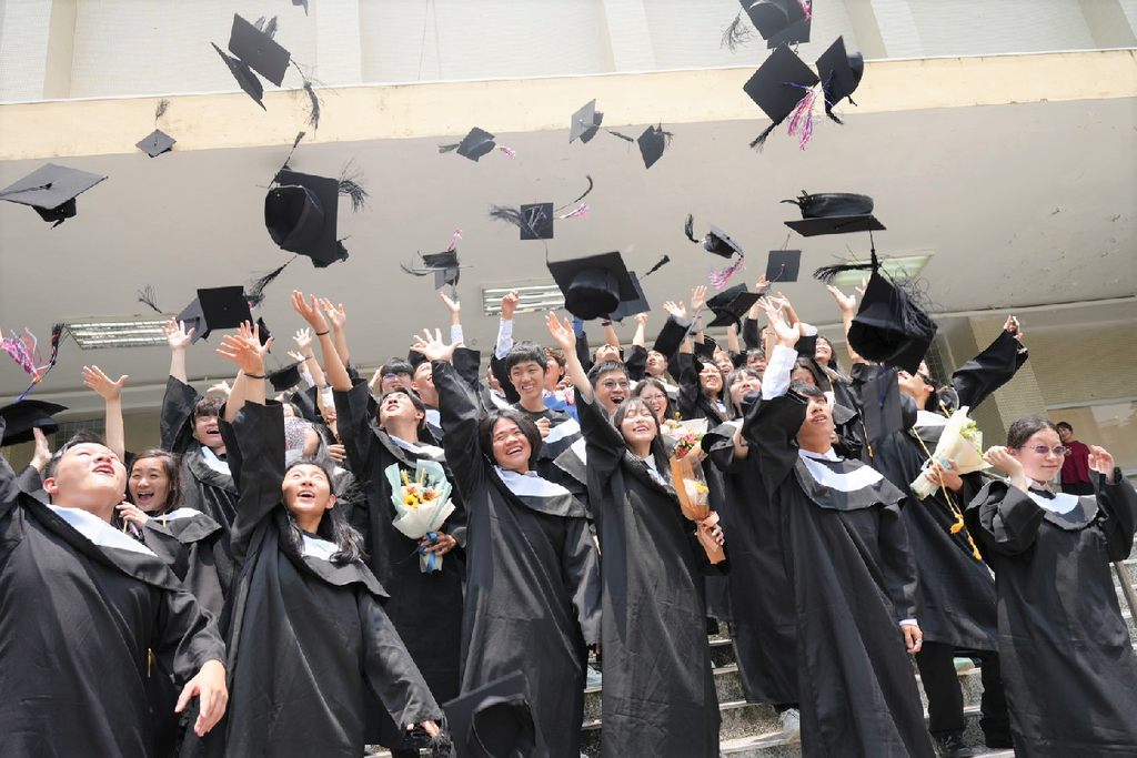 本屆畢業生代表張羽彤、朱罄瑤表示,「這三年來非常的豐富,增廣了我們的學習歷程檔案,我們完成了許多Coursework及參與許多跨國(澳洲)的課程,也培養我們全英語學習及未來大學全英語EMI授課的學科能力,這樣的國際課程提升了我們語言能力及國際視野,促進我們國際交流,讓我們具備國際移動的能力。」畢業生伍采緹同學說,「我有時回想無數晚上下課時,我們一起走過教室外長長、暗暗的走廊,沒有其他學生,除了我們,一起努力堅持三年的努力、彼此陪伴。我們今天不僅要慶祝自己的成就,還要慶祝光明和充實的未來。」