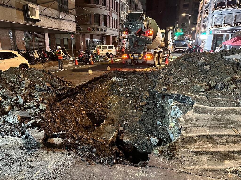 7月9日04:15新工處已先回填混凝土穩定地層,7月9日上午開始進行銑刨加鋪作業,預計今日下午即可恢復開放通行。後續將會加強該段路面巡查持續觀察,並請管線單位再徹底詳細檢測所屬管線狀況,新工處亦將安排透地雷達進行檢測,找出造成坑洞原因,以利維護鄰近道路結構狀況。