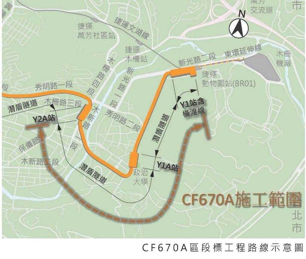 二工處進一步說明,本區段標於捷運文湖線動物園站旁及國立政治大學原莊敬宿舍外舍區範圍內分別設置Y01及Y1A兩座地下車站,其中Y01站可於動物園站內轉乘捷運文湖線,站體則因緊鄰動物園而多處牆面採「山林、海洋、大地、濕地」生命共融的設計元素,另外Y1A站為罕見於大學校區內設置捷運車站,受限用地因素長度約98.1公尺為中運量最短車站,且出入口設立於站體正上方,採挑高自然通風及南北向立面格柵通風設計。